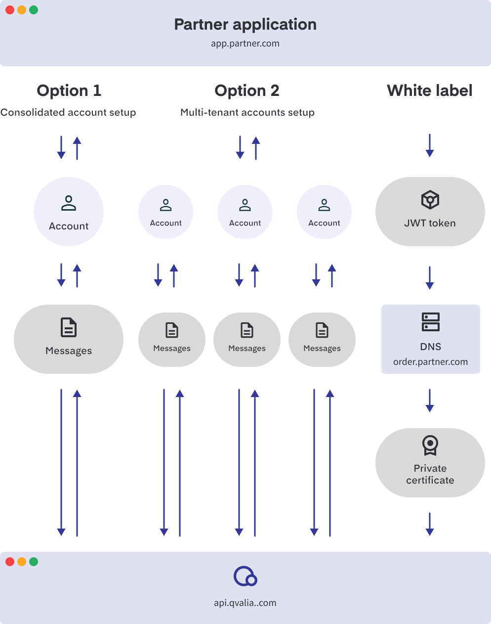 As an option, partners can use Qvalia’s white-label services to embed full UI for business message management into most frontend environments.